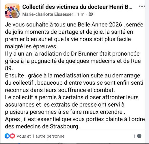 Il est totalement faux de prétendre que Dr Brunner n’exerce plus. Il y a eu 2 convocations en juin 2025 et le ressenti des personnes est identique.